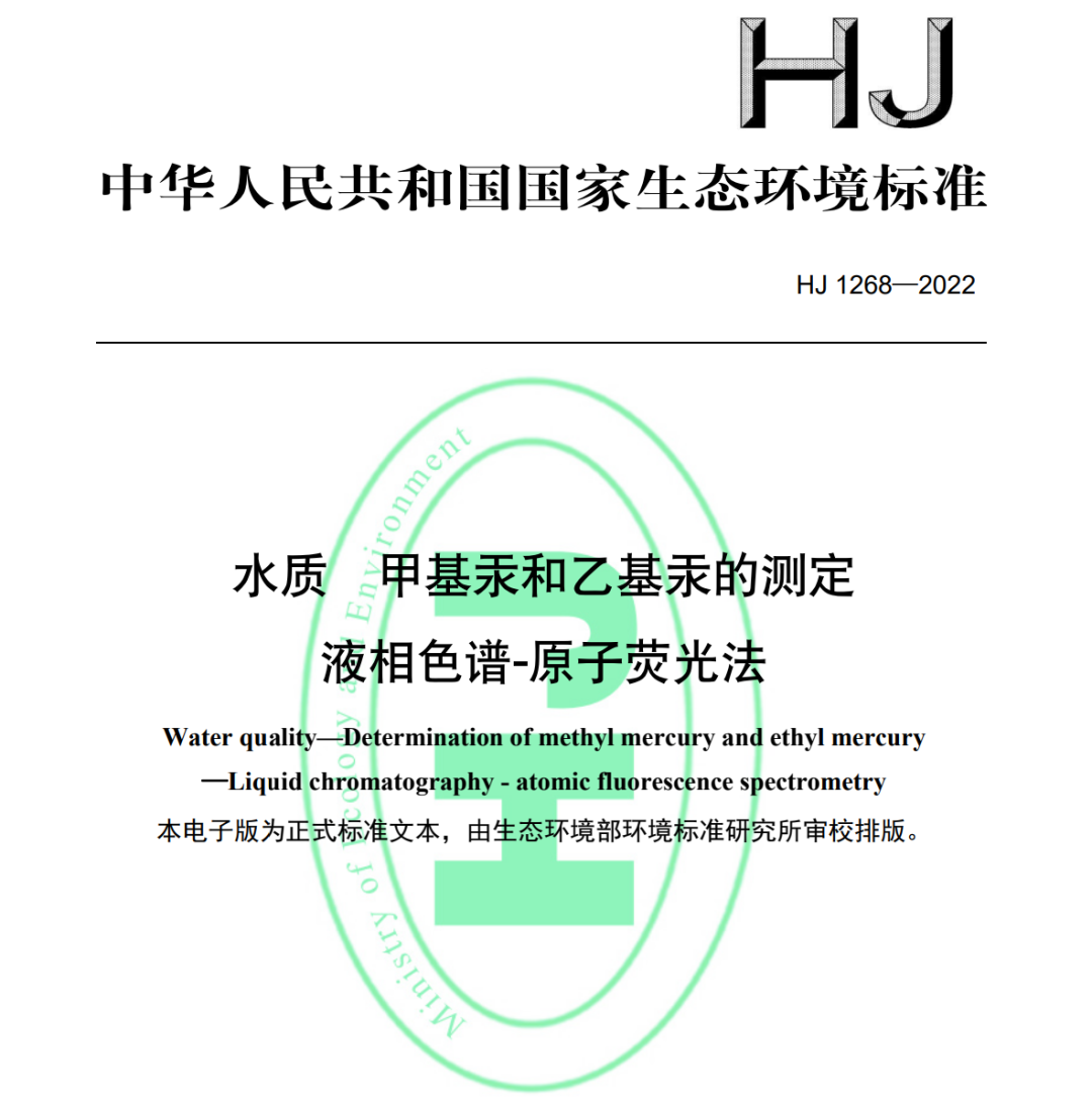 为贯彻《中华人民共和国环境保护法》和《中华人民共和国水污染防治法》,保护生态环境,保障人体健康,规范水中烷基汞的测定方法,生态环境部组织制订的《水质甲基汞和乙基汞的测定 液相色谱-原子荧光法》(HJ1268-2022)标准已于2022年12月22日发布并在2023年6月15日正式实施。该标准为首次发布,明确了水质中甲基汞和乙基汞的测定方法,为防治生态环境污染,改善生态环境质量奠定基础。